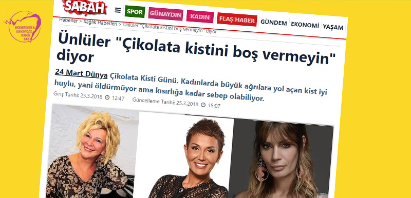 Çikolata kisti hastalığı ile ilgili farkındalığı artırmak için bugün Kadıköy Belediyesi’nde uzman doktorların katılacağı bir konuşma gerçekleşecek