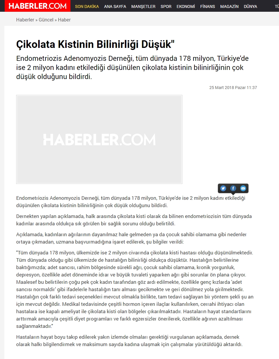The Society of Endometriosis&Adenomyosis announced that awareness about chocolate cyst, which affects about 178 million women worldwide and about 2 million women in Turkey, is very low.