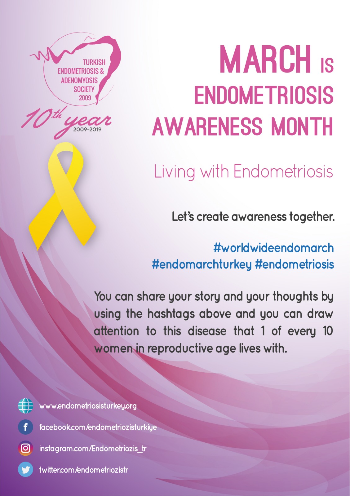 Our society was established in 2009 by physicians to inform the patients, relatives of the patients, and other physicians about this disease and associated problems. With our effort, we aim to lessen the detrimental effects of endometriosis in the future, which currently affects every one out of ten women within the reproductive age.